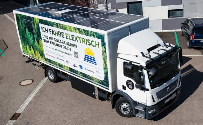 Сообщается, что вырабатываемое солнечными панелями электричество может удовлетворить от 5 до 10% потребностей грузовика в энергии. Институт систем солнечной энергии Фраунгофера ISE совместно с промышленными партнерами разработал фотомодули и силовую электронику для интеграции в коммерческие автомобили в рамках проекта «Lade-PV». Как заявляют разработчики, техническая сертификация первого «солнечного грузовика» является важной вехой на пути к более экологически безопасным автомобильным грузовым перевозкам.