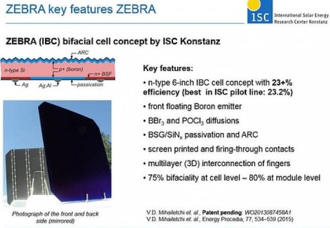 Главная технология Violet Power разработана при участии немецкого научно-исследовательского центра ISC Konstanz, возглавляемого Радованом Копечеком. Результатом совместной работы стал модуль ZEBRA. В его основе лежат недорогие IBC-фотоэлементы, в которых использованы передний плавающий эмиттер и сквозная металлизация, нанесенная методом трафаретной печати. Коэффициент преобразования энергии солнца на панелях ZEBRA превышает 24%.