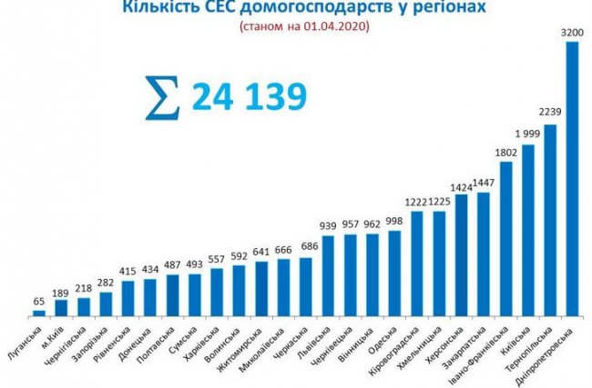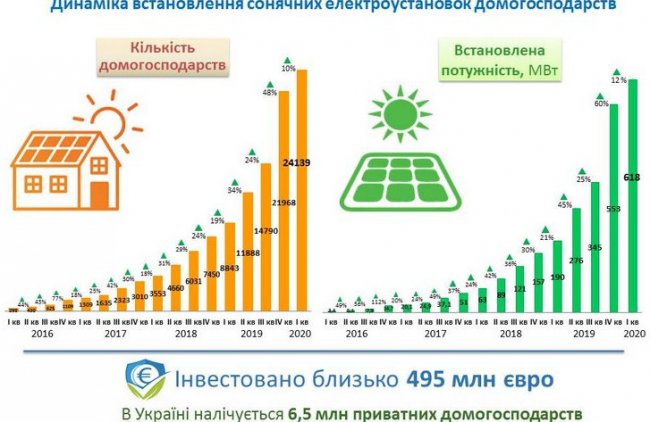 В частности, в I квартале 2020 в частных домовладениях было установлено более 2100 генерирующих станций на солнечных батареях общей мощностью 65 МВт. Это в 1,5 раза больше, чем за аналогичный период 2019 года.