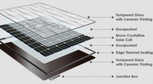 В тоже время, декоративные солнечные панели не герметизируются пленкой EVA, чтобы избежать риска расслаивания. «Мы использовали поливинилбутиральную пленку (PVB), которая получила широкое распространение и зарекомендовала себя в строительной отрасли как повышающая долговечность и надежность», - говорит Фенра.