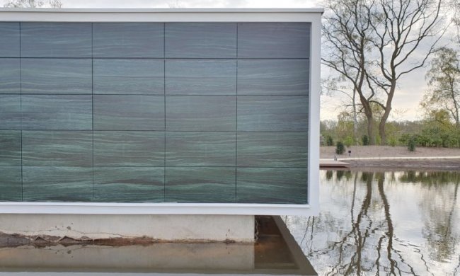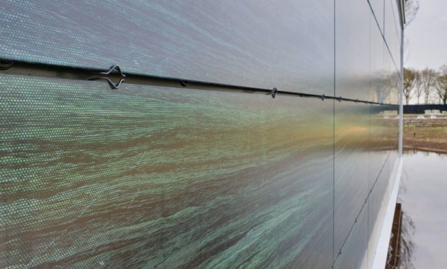 Компания удалось сымитировать внешний вид деревянных материалов благодаря керамическим чернилам, расплавленным, закаленным и нанесенным на внутреннюю сторону лицевого стекла при высокотемпературной обработке свыше 700° C. «Красящий слой зажат двумя слоями закаленного стекла и хорошо защищен от атмосферных воздействий», - объясняет Фенстра.