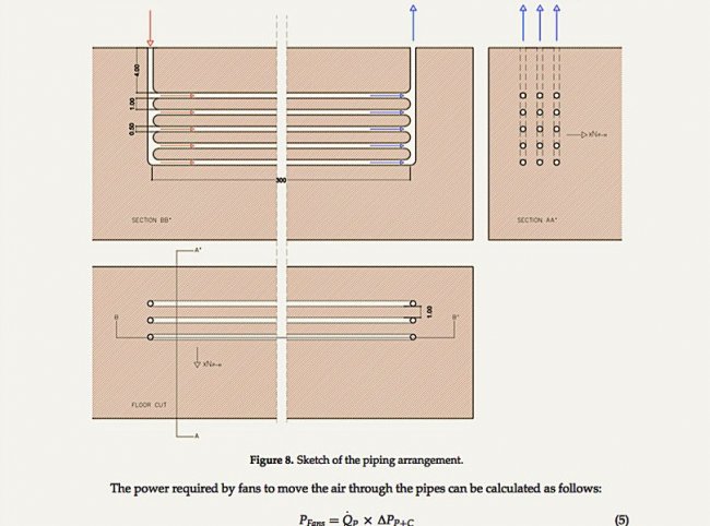Новая методика предполагает использование принципа, лежащего в основе работы систем охлаждения небольших жилых и производственных зданий, когда воздух или жидкость прокачиваются по закрытому контуру под землей и впоследствии распределяются по трубам внутри помещений. На глубине более 3 метров температура держится в пределах 20°C, независимо от климатической зоны.