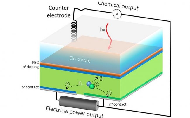 Сотрудники американской лаборатории Lawrence Berkeley совместно с коллегами из Германии изобрели уникальную гибридную технологию, позволившую одновременно получать водород за счет расщепления воды и электричество с помощью фотовольтаики.