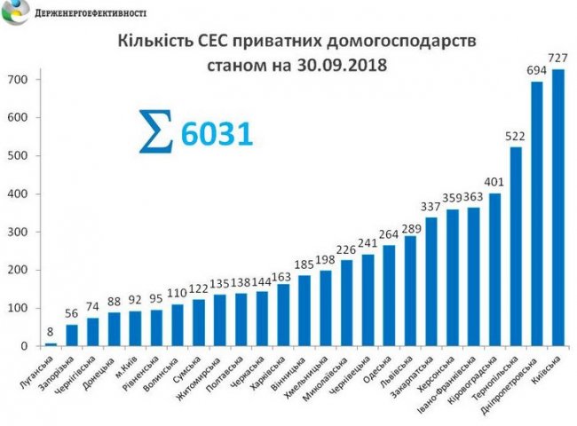 Согласно статистике Госэнергоэффективности, за последние три года в Украине количество солнечных электростанций в частных домохозяйствах достигло 6031 штук. За один только III квартал текущего года еще 1371 семья установила солнечные панели и теперь производит «чистую» электроэнергию.