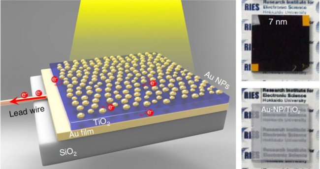 Исследовательская группа под руководством профессора Хироаки Мисавой из Научно-исследовательского института электронных наук Университета Хоккайдо уже не один год разрабатывает фотоэлектрод, способный поглощать видимый свет в широком спектральном диапазоне, используя наночастицы золота, помещенные на полупроводнике.