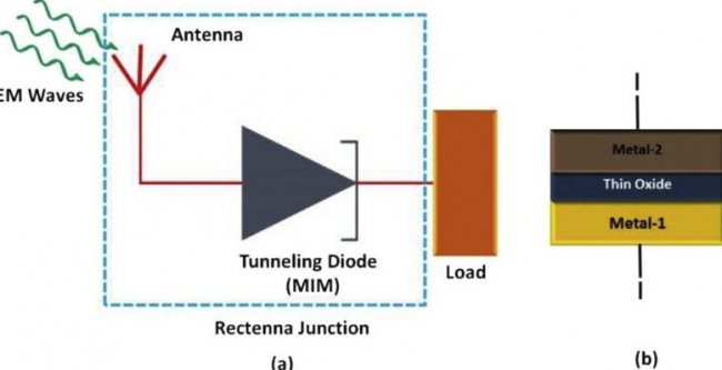 В своей работе ученые задействовали эффект квантового туннелирования, поскольку иных способов преобразовать ультракороткие инфракрасные волны пока не существует. В созданной ими ректенне электроны преодолевают энергетический барьер, проходя через устройство подобное диоду металл-диэлетрик-металл.
