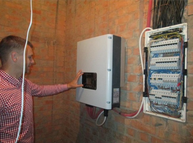 На специальном счетчике в доме пользователя отображается объем электроэнергии, производимой солнечными панелями. «От них идет 366 вольт, а инвертор уже преобразует в ток, который нужен для бытового использования - в 220 вольт. Далее дом берет энергию на свои нужды, а избыток - возвращается в центральную электросеть. А двухзонный счетчик показывает сколько домохозяйсвто потребило из сети, и сколько отдало», - рассказывает Виктор.
