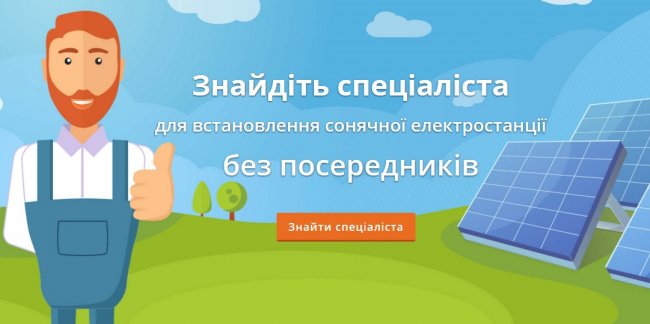 «На нашей бирже зарегистрированы лучшие монтажники солнечных панелей со всех регионов Украины. Оставьте заявку и уже сегодня вы узнаете кто из этих специалистов и по какой цене поможет вам установить солнечную электростанцию», - говорится на сайте проекта.