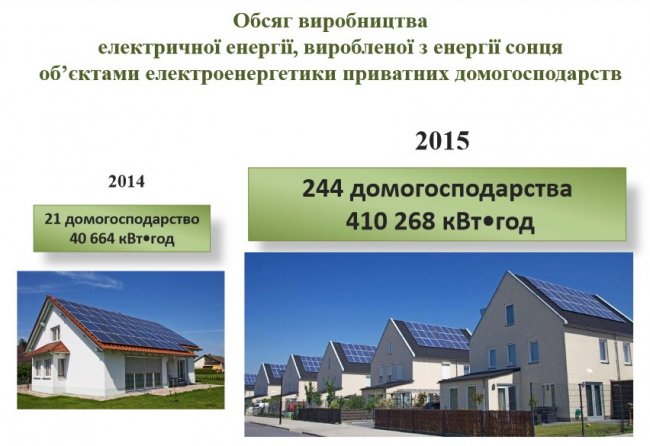 Также было отмечено, что статистика установки солнечных панелей свидетельствует об эффективности действия Закона Украины "О внесении изменений в некоторые законы Украины относительно обеспечения конкурентных условий производства электроэнергии из альтернативных источников энергии", который вступил в силу 1 июля 2015.