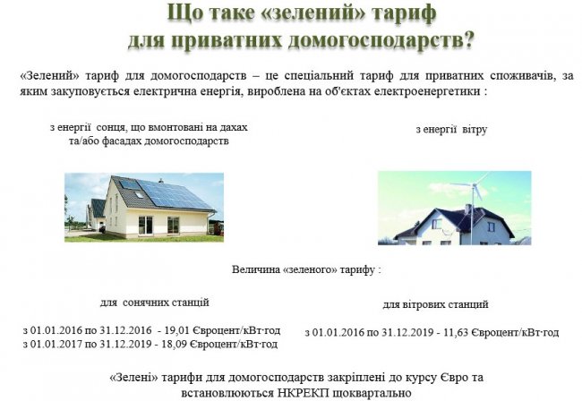 - Действующее на данный период постановление НКРЕКП «Об установлении «зеленых» тарифов на электрическую энергию для частных домохозяйств»
