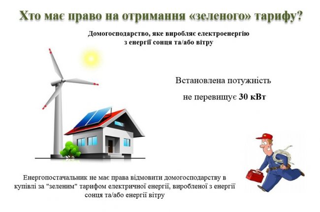 Энергопоставщик не имеет права отказать домохозяйству в покупке по "зеленому" тарифу электричества, произведенного из энергии солнца и / или энергии ветра.