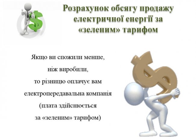 Если вы потребили меньше энергии, чем произвели, то разницу оплачивает электропередающая компания. (Оплата осуществляется по действующему «зеленому» тарифу).