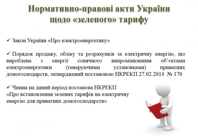 Нормативно-правовые акты Украины по «зеленому» тарифу