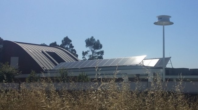 Сооружение с футуристическим внешним видом, расположенное в гавани португальского города Порто представляет собой инновационный ветрогенератор Omniflow с вертикальной осью вращения, который дополнительно оснащен солнечными панелями для производства электроэнергии на месте.