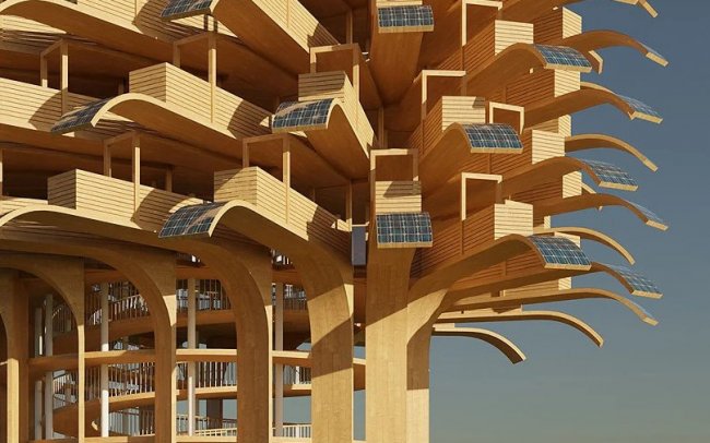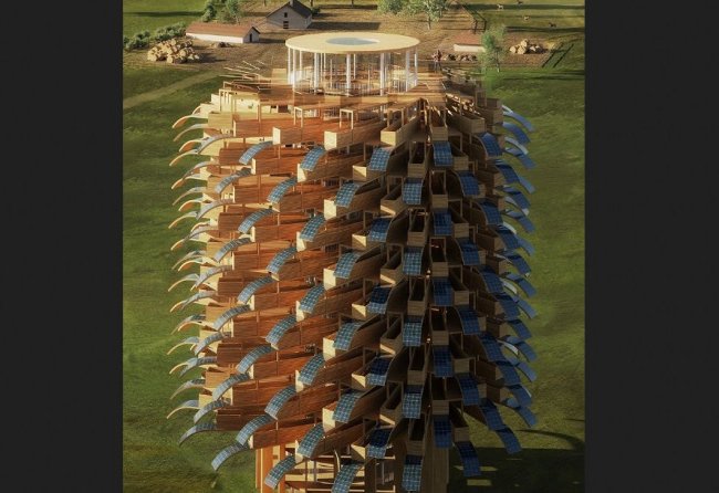Руководствуясь принципами эко дизайна, индийское архитектурное бюро NUDES разработало смотровую башню с положительным энергобалансом. Проект, названный «солнечным деревом» представляет собой основанное на модульной архитектуре строение. Оно состоит из множества сборных «ячеек», объединенных в цельную конструкцию.