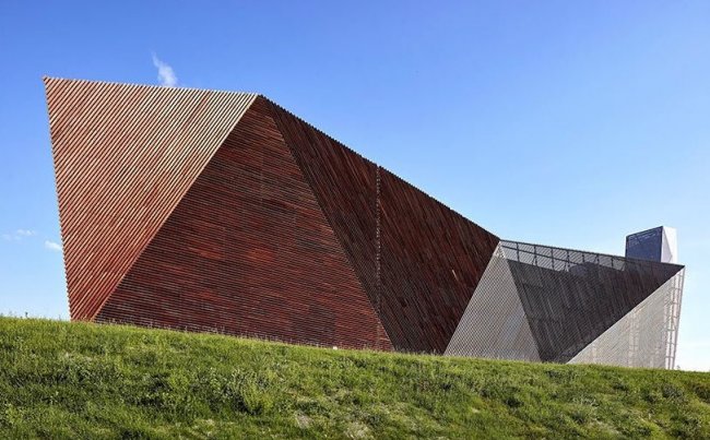 Основное здание энергетической фабрики имеет протяженность сто метров и высоту тридцать метров. Проектировщики описывают зеленые насыпи как «природный бастион», защищающий энергетическое производство, - эти дюны не являются непреодолимым барьером, а выражают идею о функциональности элемента в выражении задумки художника, его доступности и живости.