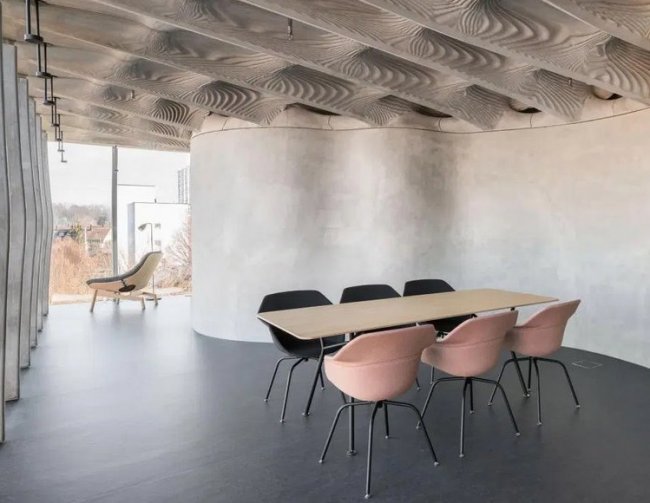 Автоматизация часто ассоциируется с потерей людьми рабочих мест. Но Колер уверен, что применение цифровых технологий повысит креативность сотрудников и поспособствует развитию различных навыков. Результаты машинной обработки информации можно использовать и в сфере дизайна. Примером может служить необычный потолок в DFAB House, напечатанный на большом 3D-принтере.