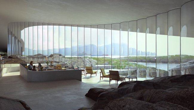 «The Whale будет возвышаться естественно, словно мягкий холм на скалистом берегу — будто гигант приподнял тонкий слой земной коры, создав под ней полость», - говорят в архитектурном агентстве.