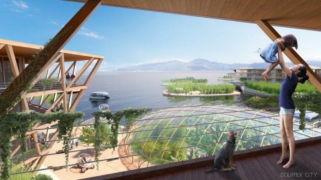 Часть зданий города на воде будет выступать и в качестве морских ферм для выращивания водорослей и моллюсков на подводной части платформы. Перемещаться между плавучими домами можно будет на легком электротранспорте, используя различные беспилотные технологии и шеринговые сервисы.