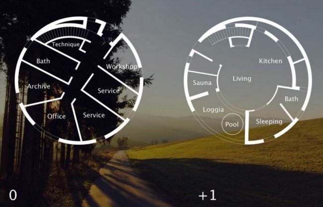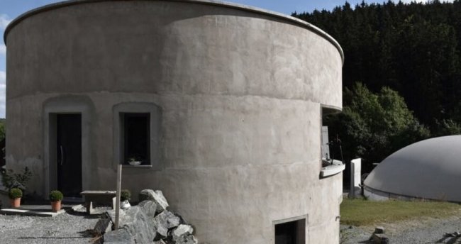 Архитектурное бюро Christoph Hesse Architects получило необычный заказ от специалиста в технологии производства биогаза: ему был нужен круглый в горизонтальном сечении дом. Изобретатель выяснил, что дом цилиндрической формы с круглыми комнатами обеспечивает оптимальные условия для производства биотоплива, которое можно использовать для отопления и других бытовых нужд.