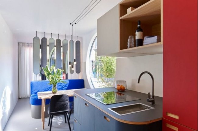 Современный и динамичный вид дому придают круглые окна, а интерьер подобран в современном минималистском стиле. Естественный свет и легкость окружающего пространства заставляют немедленно забыть, что когда-то это было обычным боксом для перевозки грузов.