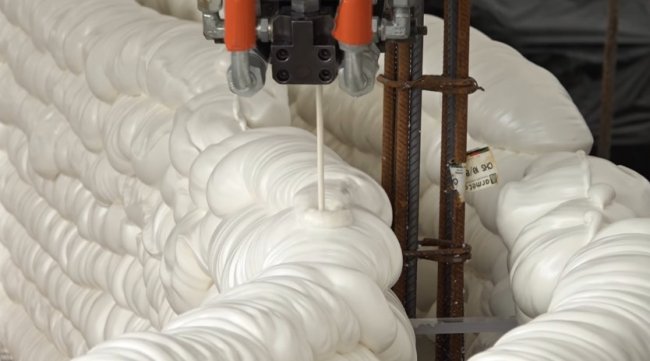 Особенностью технологии французских инженеров является печать полого каркаса из монтажной пены, которая одновременно служит и опалубкой для заливаемого бетона, и теплоизолирующим слоем, сообщает 3ders.org.