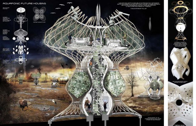 Британские исследователи из Университета Шеффилда предложили концепцию домов будущего, которые будут строить себя сами с помощью трехмерной печати и производить продукты питания для своих хозяев. Разработка получила название Aquaponic Future Housing (Аквапонические дома будущего).