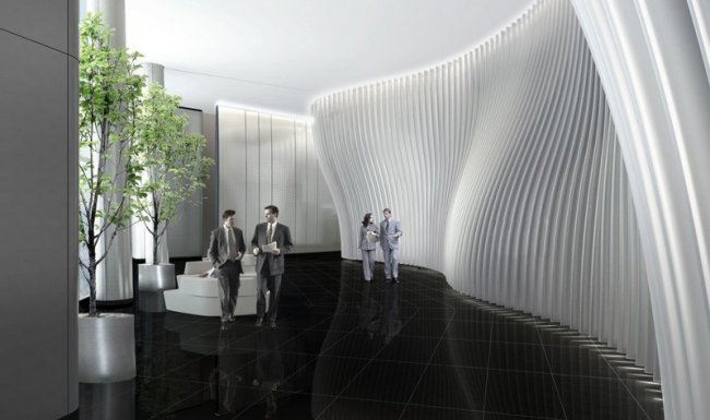 «Ребра» супернебоскреба выступают из его объема и покрыты гладкими стеклянными панелями. Фасады будут отделаны специальными фактурными компонентами. За их навесной стеной скрыта основа конструкции из композитного бетона и металлический остов.