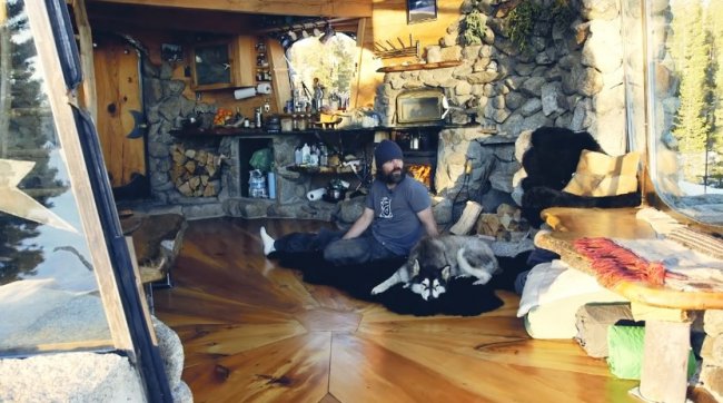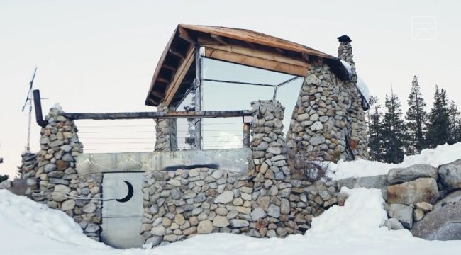 Строительным материалом стали дерево и камни, который профессиональный сноубордист нашел на собственном земельном участке. Вода поступает в жилище из двух горных ручьев, тепло обеспечивает камин на дровах, а необходимое электричество генерируют солнечные батареи.