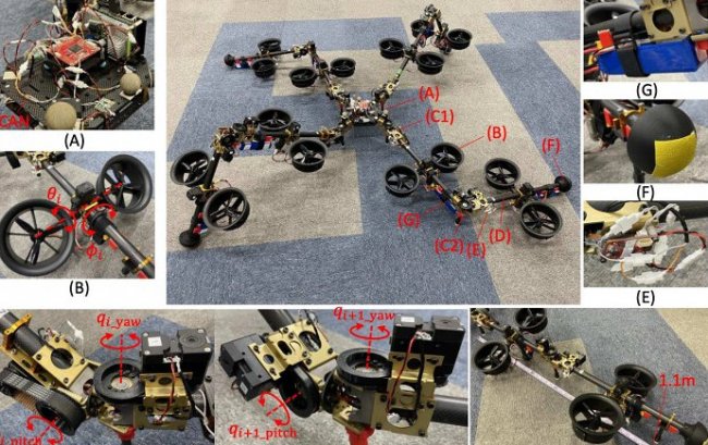 Двигатели дрона могут изменять вектор тяги в любом направлении с помощью многоосевых карданных систем. Команда научилась управлять этим сложным механизмом и координировать его полет в любых направлениях в режиме реального времени.