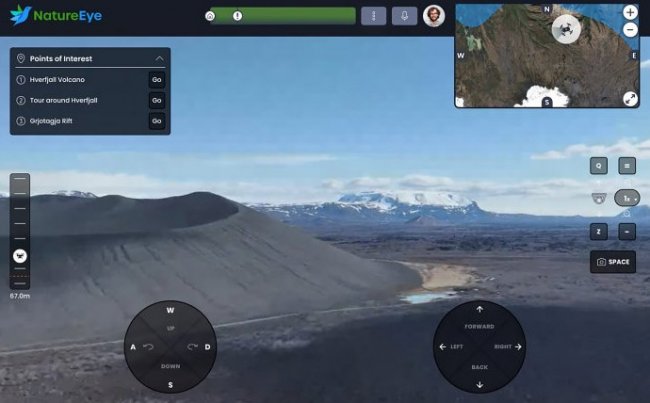 Проект NatureEye предназначен для тех, кто хочет своими глазами (пусть и через камеру) увидеть красоты нашей планеты с высоты птичьего полета. Это не виртуальное, а реальное путешествие, в котором пользователь сам управляет дроном с камерой — он летит и смотрит на то, что пожелает. Это дешевле, чем личная поездка в далекие края — к тому же, можно осмотреться там, куда вас вживую никогда не пустят.