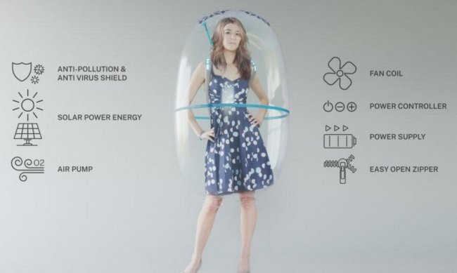 Миланское дизайнерское бюро предложило принципиально новое видение персонального пространства в концепции прозрачного пузыря (Bubble Shield), создающего защитный барьер от вируса и нежелательных личных контактов в общественных местах. Прозрачный надувной кокон на молнии позволяет исключить воздушно-капельное заражение вирусом и вдыхание загрязненного воздуха.
