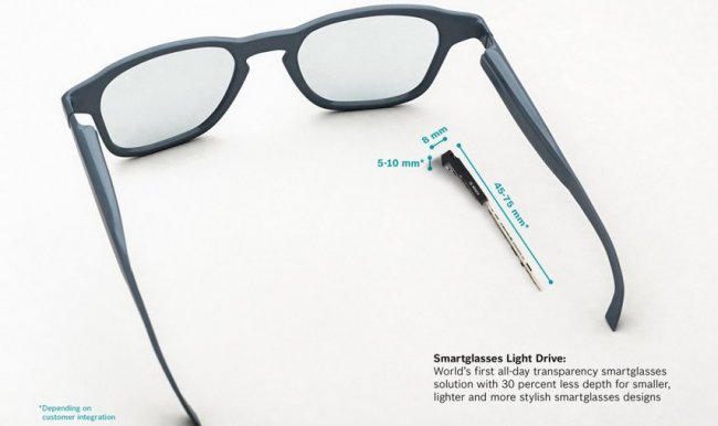 Компания Bosch выпустила весьма интригующее видео, в котором демонстрируются преимущества нового универсального модуля, способного превратить любые очки в «умные». Такие очки смогут показывать навигацию, принимать звонки и уведомления, сообщения мессенджеров и отображать различные напоминания.