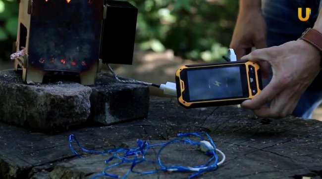 Айфон заряжается за полтора часа, как от обычной сетевой зарядки у вас дома. Конструкция устройства достаточно прочная и работает в любых условиях – зарядное не боится дождя, ветра и отрицательных температур. Печка-аккумулятор может быть использована вместо костра: благодаря продуманному дизайну создается хорошая тяга, вода вскипает быстрее и не требует большого количества дров.