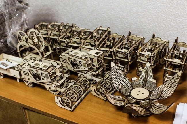 Много технологических проблем доставляет и материал паззлов — фанера. Изначально Денис собирался делать паззлы штамповкой из картона, пробовал создавать модели на чужом оборудовании. Но картон изнашивается. Пробовал ламели (деревянные планки), но оказалось, что примерно 40% из них — выбраковка, тестировали пенокартон, пенополистиролы, акрил. Остановились на фанере, детали вырезаются на листе лазерным резаком.