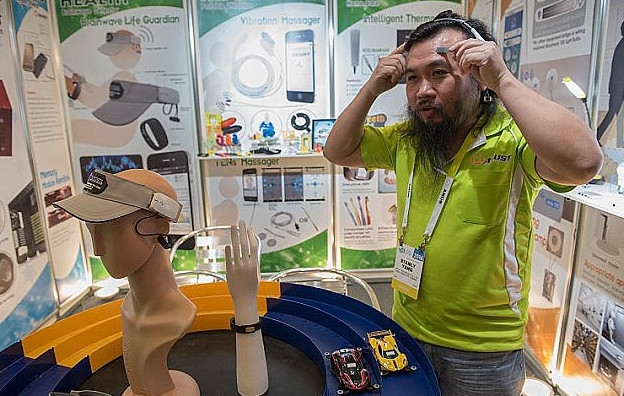 Необычный гаджет тайваньской компании Akust Technology под названием «BrainWave Life Guardian» был представлен на CES 2016. Устройство в форме солнезащитного козырька имеет электронную начинку, которая позволяет считывать мысли, вернее электрические сигналы мозга водителя во время движения. В