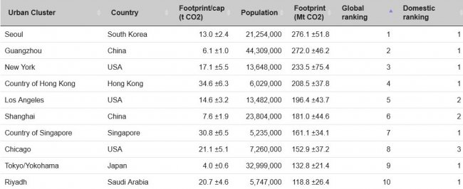 Лидером антирейтинга стал южнокорейский Сеул, на втором месте — Гуанчжоу в Китае, на третьем — Нью-Йорк. Именно в этих городах вырабатывается наибольшее количество углекислого газа в год.