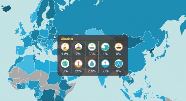 Одной из этих стран также является и Украина. Разработанная американскими исследователями интерактивная карта показывает, что высокий потенциал развития в Украине принадлежит ветровой энергетике, общая доля которой составит 55%, из которых 25% придется на офшорные и 30% - на береговые ветропарки.