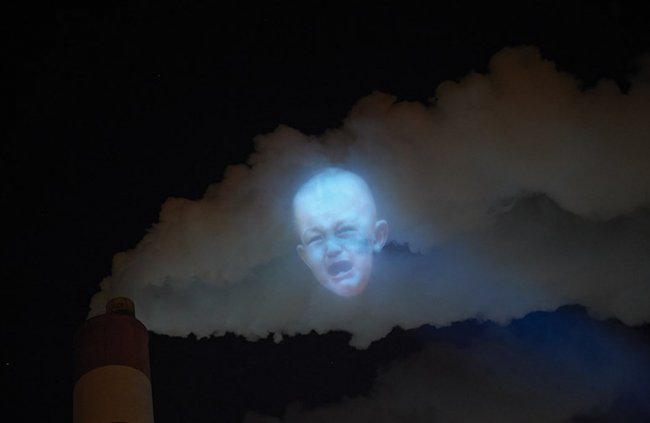 Для этого сотрудники фирмы установили рядом с загрязняющей фабрикой проектор, который передал изображение плачущих детских лиц на дым из труб и запечатлели все действие на видео. На 54-секундном ролике видно, что в клубах дыма четко просматриваются страдающие лица детей, а в конце появляется надпись: «Очисти воздух. Пусть будущее задышит снова».