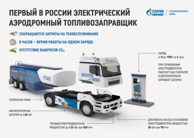 Как подчеркнули в «Газпром нефти», применение электромобиля полностью исключает выброс углекислого газа, а также позволяет на 60 % снизить уровень операционных затрат. При этом «электрический» топливозаправщик уже обслуживает в Шереметьево воздушные суда «Аэрофлота» с «Победой», а также Smartavia с Air Serbia.