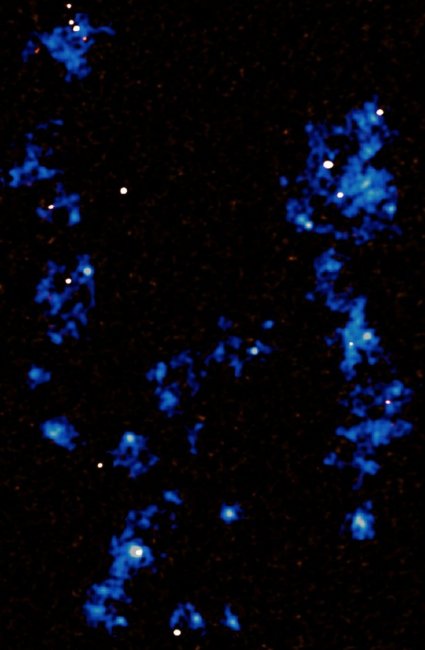 Гипотеза о «космической сети» существует давно, она неплохо подтверждается при моделировании, но ученым впервые удалось обнаружить ее признаки в реальном мире. Они случайно нашли облако газа, которое простиралось в сторону от далекой галактики без видимых на то причин. Пришлось применить новые системы фильтрации света, чтобы обнаружить, что облако концентрировалось вокруг еще более незаметных, но вполне материальных линий из водорода, ведущих от этой галактике к другим.