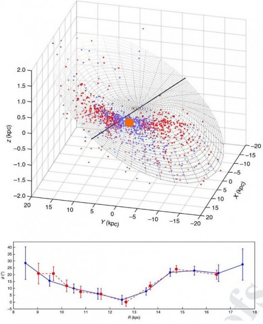Изучив в общей сложности траектории движения 1339 цефеид, астрономы составили новую 3D-карту Млечного пути. И оказалось, что вместо единой спирали объекты в ней сгруппированы в виде размытой буквы «S», где верхняя и нижняя дуги закручиваются вокруг локальных осей, а вся система — вокруг единого центра. Там, в сердце галактики, сосредоточено гигантское количество звезд, поэтому данная гравитационная аномалия создает сильные моменты вращения для объектов на периферии галактики, вынуждая их двигаться по сложным закрученным траекториям.