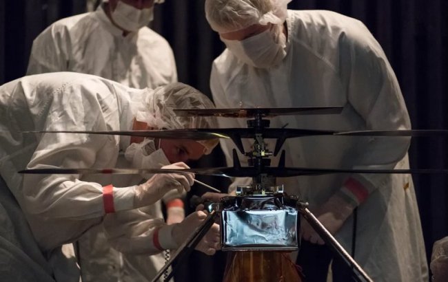 Вертолет для исследования Марса изготовлен из 1500 деталей из углеродного волокна, авиационного алюминия, кремния, меди, фольги и пенопласта. Во время тестовых запусков его удалось поднять на 5 см от поверхности и довести время эксплуатации до одной полной минуты, и этого оказалось достаточно для сбора всех нужных данных.