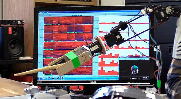 Профессор Вайнберг, специалист в области музыки, техники, информатики и физики вместе со своими студентами из Технического института Джорджии разработал руку-манипулятор, предоставив возможность играть ударнику, буквально в три руки.