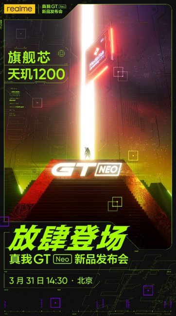 Китайский производитель опубликовал постер в социальной сети Weibo, согласно которому новинку назовут Realme GT Neo. Аппарат покажут на мероприятии 31 марта. То есть через две недели.