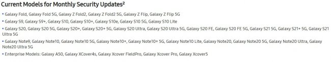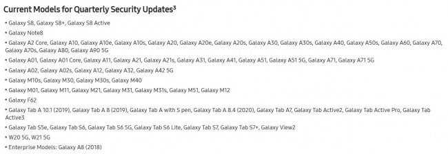 В категорию «ежемесячно» вошли линейки Galaxy S8 и Note 8, серия Galaxy A и Galaxy M.