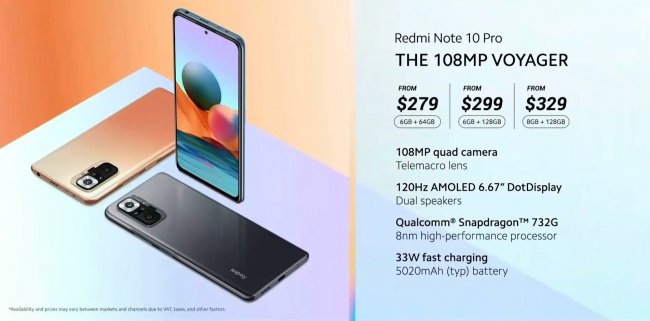 - Redmi Note 10 Pro 8/128 ГБ — $329 (цена на старте продаж $299)