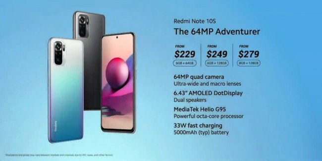 - Redmi Note 10S 8/128 ГБ — $279 (цена на старте продаж $249)