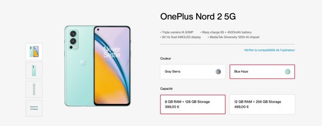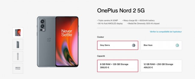 Аппарат доступен на официальном сайте производителя в двух модификациях памяти и в расцветках Gray Sierra и Blue Haze. За базовую версию с 8 ГБ ОЗУ и 128 ГБ ПЗУ просят 399 евро, а за топовую на 12 ГБ ОЗУ и 256 ГБ ПЗУ — 499 евро. Кстати, первым покупателям в подарок дают проводные наушники OnePlus Type C Bullets (отдельно стоят 25 евро) и набор Google Stadia Premiere Edition (отдельно стоит 99 евро). Что касается Украины, то у нас OnePlus Nord 2 должен появиться чуть позже. Сколько поросят за смартфон пока неизвестно.