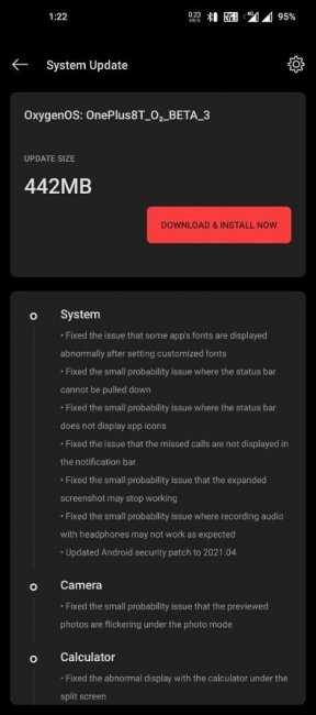 Прошивка вышла для OnePlus 8 и OnePlus 8 Pro с номером сборки OxygenOS Open Beta 9. OnePlus 8T, в свою очередь, получил OxygenOS Open Beta 3. Разработчики добавили в систему апрельский патч безопасности, улучшенную галерею и новую функцию Data Monitor, которая позволяет отслеживать изменения FPS/CPU/GPU в реальном времени во время игры. Кроме этого в прошивке ещё поработали над ошибками. Всего обновление содержит 11 мелких исправлений.